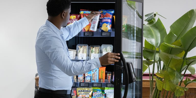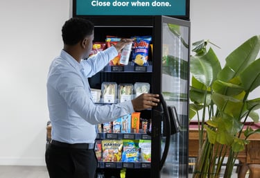 Providing 24/7 access to snacks and drinks with modern, sleek smart machines at no cost.
